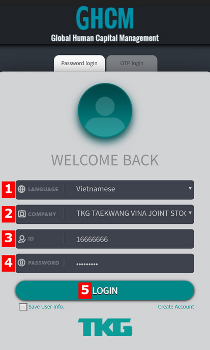 1: Chọn ngôn ngữ Việt Nam 2: Chọn chi nhánh bạn đang làm việc 3: Nhập số thẻ (Mã nhân viên của bạn) 4: Nhập mật khẩu * Mật khẩu mặc định là ngày tháng năm sinh của bạn - VD: Bạn sinh ngày 23 tháng 02 năm 1985 - Nhập mật khẩu 19850223 5: Bấm Login để đăng nhập * Nếu không đăng nhập được vui lòng: Liên hệ ZaLo: 090.87.87.247 để lấy lại mật khẩu